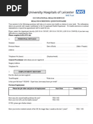 How to Basic Health Screening Questionnaire Private Health. The hsq is not a medical examination. Apart from the basic medical history, you also need to know the occupational history.